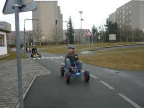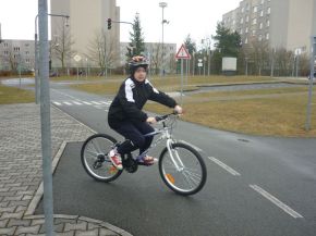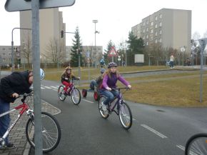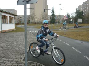 Žáci čtvrtých a pátých tříd na dopravním hřišti (praxe)