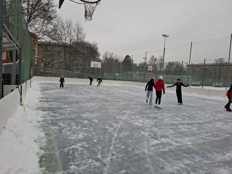Díky mrazivému počasí se nám konečně podařilo proměnit naše hokejbalové hřiště v kluziště pro naše žáky. Kluziště je využíváno v hodinách tělesné výchovy a přináší vítané zpestření výuky v podobě pohybu na čerstvém vzduchu.