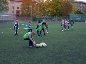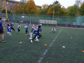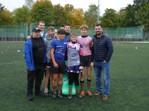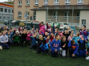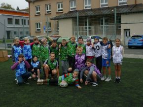 V pátek 18. 10. si žáci z prvního stupně vyzkoušeli s trenéry z Rugby Clubu Plzeň tréninkovou hodinu ragby. Nejprve si žáci vybrali barevný dres a rozdělili se do osmi týmů.