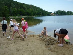 Středu 19. června strávili žáci tříd III.A a III.B u Boleveckého rybníka. Užili si spolu krásný den při „vodním“ stavitelství, na houpačkách i jiných atrakcích. Nechybělo ani poznávání rostlin a živočichů. Někteří žáci viděli poprvé zblízka divoké kachny, labutě, vážky i krásně barevné motýly. Svačiny z domova  doplnili mraženými dobrotami, limonádami a dokonce i pizzou.