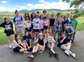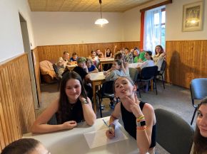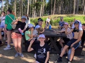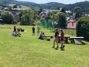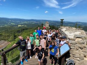 Ve dnech 17.-19. 6. jsme se vydali se třídou VI. B na třídní výlet do Kašperských Hor do zdejšího penzionu Holeček. V pondělí v 9 ráno na nás u budovy školy čekal minibus, který nás dopravil na místo pobytu. První den byl ve znamení seznamování se s okolní krajinou a samozřejmě i penzionem, včetně oběda a později i večeře. Večer přišel na řadu „pubquiz“ s různými otázkami pro děti, ty byly rozděleny do týmů a na vítěze čekala sladká odměna. V úterý po snídani jsme vyrazili na celodenní výlet, jehož hlavním cílem byl hrad Kašperk a nedaleký Pustý Hrádek. V průběhu cesty děti plnily různé úkoly zaměřené na vzájemnou spolupráci. Po výšlapu na hrad nás čekala nejen objednaná komentovaná prohlídka, ale i naprosto nádherný výhled na celou Šumavu, včetně místního občerstvení. Večer nás samozřejmě nemohl minout fotbalový přenos ČR proti Portugalsku, kdy děti zodpovědně fandily. Poslední den se nesl ve znamení sportovních, orientačních a dovednostních her na hřištích u penzionu. Celý pobyt nás provázelo nádherné, slunečné a teplé počasí, takže nám chyběla jen nějaká nádrž s vodou k osvěžení. V odpoledních hodinách přišel čas loučení s krásným prostředím Kašperských Hor a minibus nás opět odvezl zpět k naší škole.