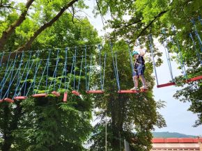 Cestou necestou, polem nepolem…, tak by mohlo začít vyprávění 9. A, která se na konci školního roku vydala na školní výlet do Sušice. Počasí jako ze žurnálu si samo říkalo o aktivně a adrenalinově strávené dny v Offparku Sušice. O zábavu bylo postaráno. S odvahou se žáci vrhli do korun stromů, kde si vyzkoušeli prolézt lanovou dráhu s různě těžkými překážkami, a to vše s profesionální horolezeckou výbavou za dohledu příjemné instruktorky Elišky. Mnozí překonali své osobní limity, protože místy byla dráha opravdu náročná. Unavení, ale šťastní jsme se pak všichni přesunuli do chatové osady Luh, kde jsme se ubytovali. Tady jsme strávili zbytek dne hraním společenských her a povídáním plném legrace. Druhý den nás v šumavských lesích čekala dobrodružná akční hra paintball, která všem dala opravdu zabrat. Strategie, taktika, horko a někdy i bolest. To všechno k této hře patří. Offpark jsme však opouštěli se silnými zážitky, na které budeme vzpomínat celý život.