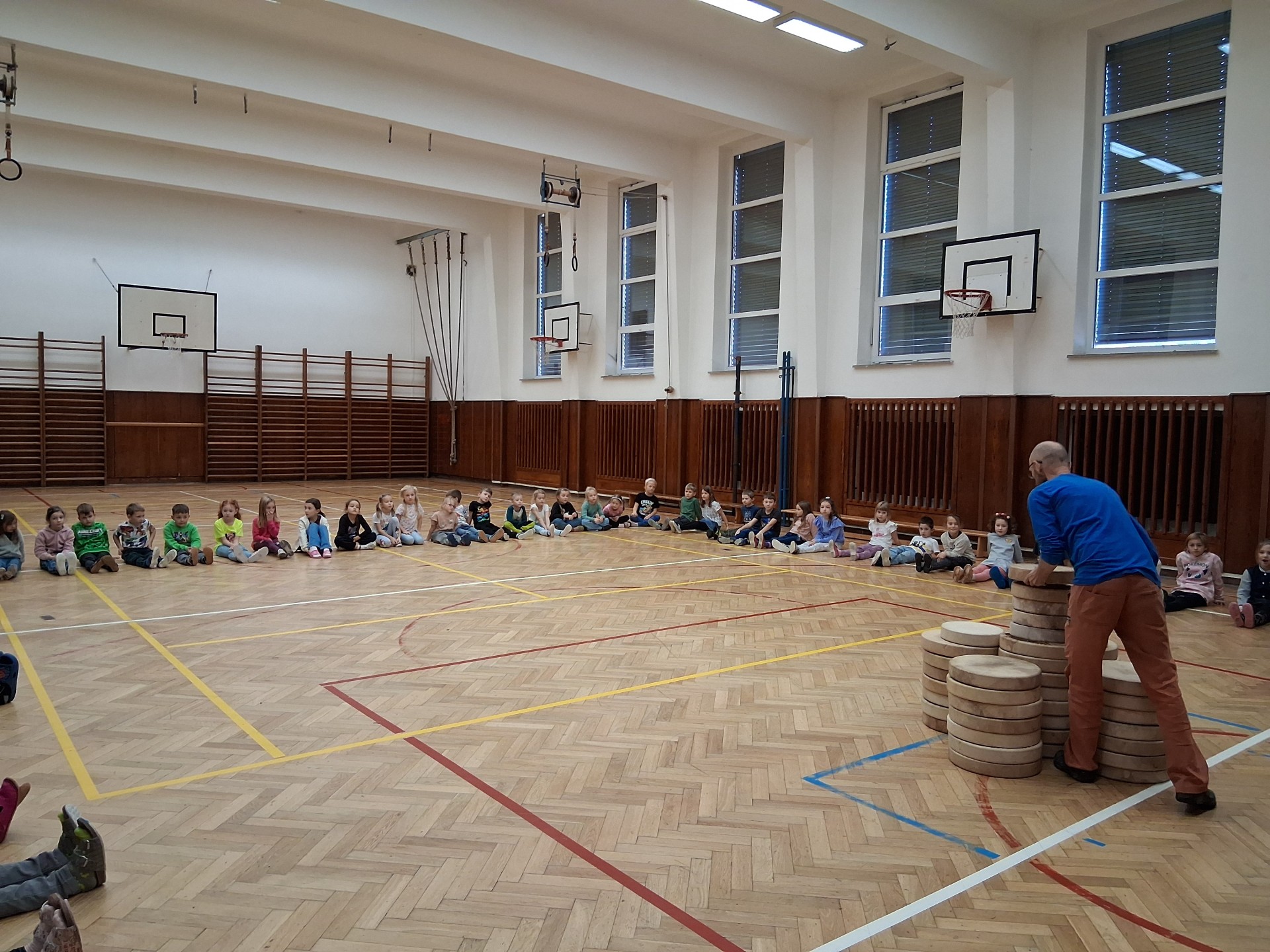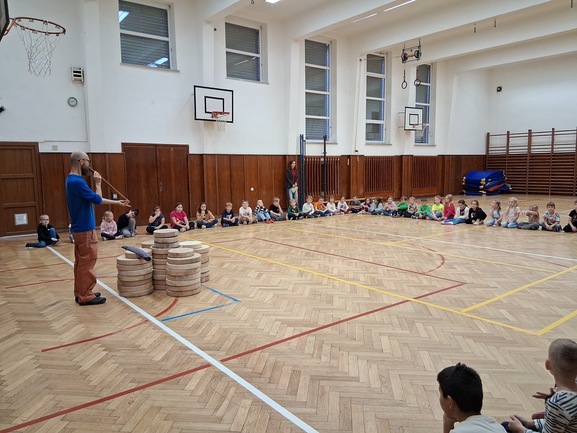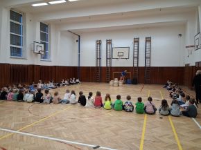 V pátek odpoledne se tělocvična naší školy proměnila v místo plné rytmu, zábavy a také relaxace, když ji navštívil bubeník David se svými hudebními nástroji z celého světa. Hlavním lákadlem bylo společné bubnování na indiánské bubny, kterého se aktivně účastnili všichni žáci. Naučili se, jaké různé zvuky může jeden buben vykouzlit, jak správně držet paličku, a že není potřeba síla, aby se buben rozezněl. Na závěr čekala na děti chvilka zklidnění a relaxace za nádherných zvuků různých netradičních nástrojů. Tato show byla skvělým zpestřením běžného programu naší školní družiny.