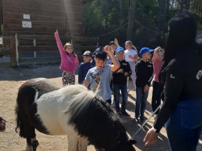 Co všechno děti zažily? Krmení zvířat – každý si mohl vyzkoušet, jak se podává seno kozám, jak si berani pohnávají na mrkvi. Dozvěděly se spoustu zajímavých informací, třeba, že dikobraz bodliny nestřílí a jak se chovat, když potkám prase divoké. Kontakt se zvířaty – děti si mohly pohladit králíky, ovečky, slepice a koníky. Na nich si mohly vyzkoušet česání a hřebelcování. Pro mnohé to byl vůbec první kontakt se zvířaty a nadšení bylo nepřehlédnutelné.