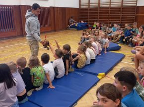 V pondělí 17. 6. 2024 se za námi přijela podívat zvířátka, a nejen tak ledajaká. Žáci mohli spatřit například pestrobarevného papouška Lori, dva holoubky diamantové, vakoveverku a kosmana bělovousého. Dozvěděli se spoustu zajímavostí o jejich životě a chovu a některá si mohli i pohladit. Nejvíce legrace si však žáci užili s maličkým pejskem plemene čivava, který, za jejich pomoci, předváděl různé psí kusy. Věříme, že si všichni tuto zajímavou návštěvu užili a budeme se opět těšit na viděnou.