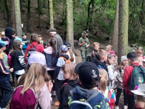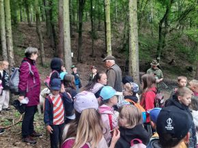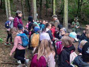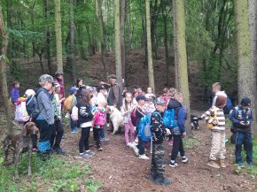 Jako každoročně vyrazili nejlepší sběrači kaštanů na výlet do lesa. Tymákovští myslivci, v čele s panem Cvrčkem, nás provedli krásným lesem a přivítali nás fanfárou z myslivecké trubky. Také na nás čekalo šest vycvičených mysliveckých psů, kteří nám svou bystrost a šikovnost předvedli. Pro děti byla dále připravena poznávačka s určováním druhů stromů a keřů. Zvládli jsme překonat i strmý kopec, kde jsme si vyzkoušeli naší fyzickou zdatnost. A na závěr pro nás měli myslivci připravené překvapení – sladkou odměnu.